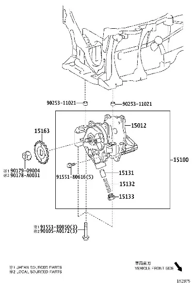 Схема применения Шестерня масляного насоса для Toyota COROLLA (E17) (2013 - 2025)