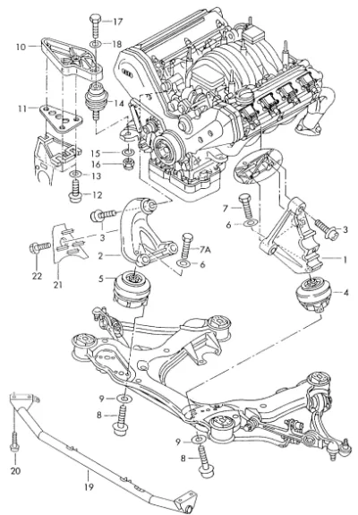 Схема применения Подушка (опора) двигателя левая для Audi A8 D2 (4D2, 4D8) (1994 - 2005)