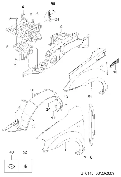 Схема применения Крыло переднее левое для Chevrolet AVEO II (T250, T255) (2005 - 2011)