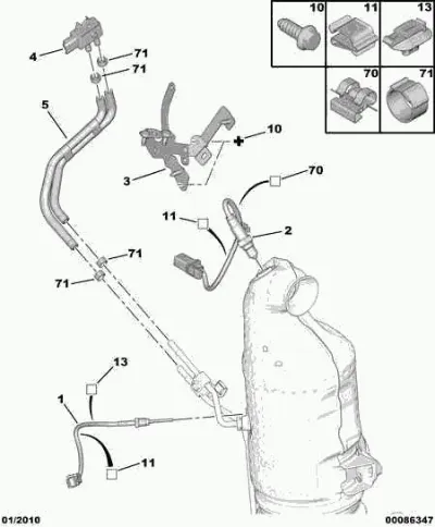 Схема применения Датчик температуры отработавших газов (ОГ), сажевого фильтра для Citroen C4 GRAND PICASSO I (UA) (2006 - 2013)