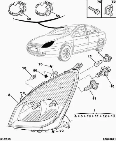 Схема применения Фара левая для Citroen C5 I (DC) (2001 - 2004)