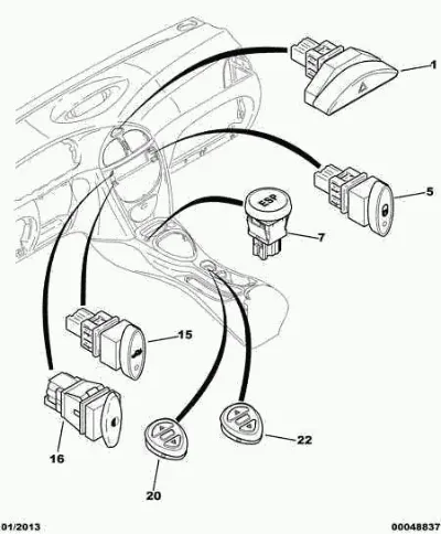 Схема применения Кнопка включения аварийного сигнала для Citroen C5 I (DC) (2001 - 2004)