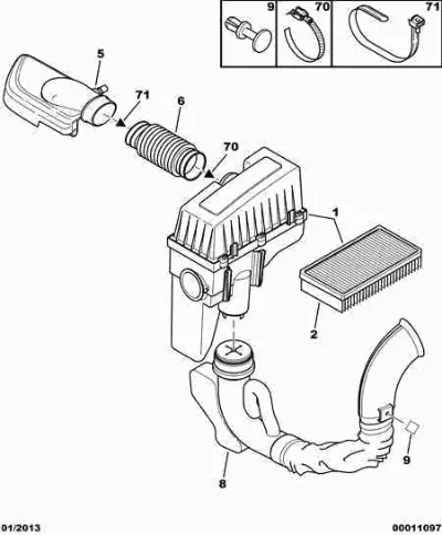 Схема применения Корпус воздушного фильтра для Citroen C5 I (DC) (2001 - 2004)
