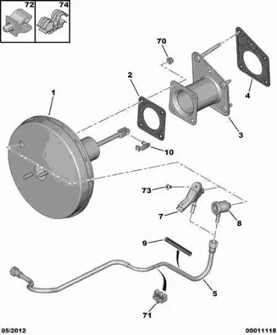 Схема применения Усилитель тормозов (вакуумный) для Citroen C5 I (DC) (2001 - 2004)