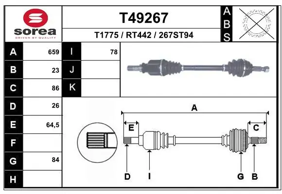 Напіввісь logan/sandero 1.5dci/1.6i 06- л. (23/26+abs) 649mm |