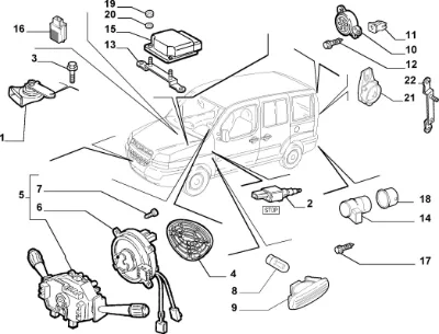 Схема применения Сигнал звуковой (клаксон) для Fiat DOBLO I (223) (2001 - 2010)