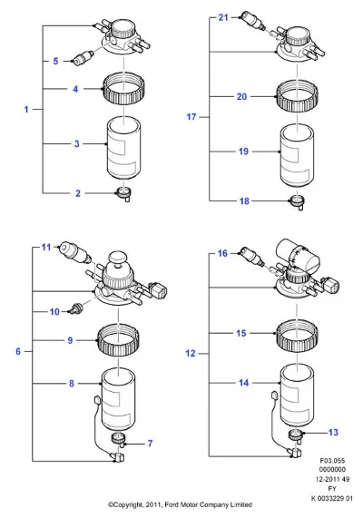 Схема применения Корпус топливного фильтра для Ford TRANSIT V (V184/5) (2000 - 2006)