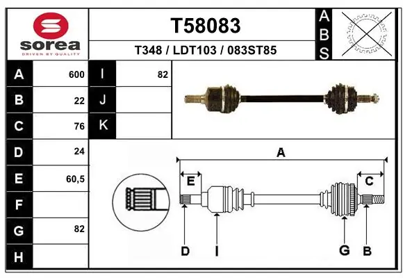 Запчасть Полуось (привод) передняя левая подходит для автомобилей: