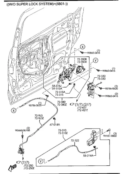 Схема применения Замок двери задней правой для Mazda 5 I (CR) (2005 - 2007)