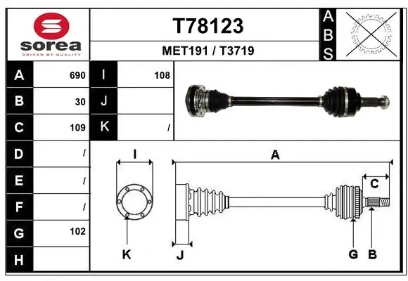 Запчасть Полуось (привод) передняя левая подходит для автомобилей: