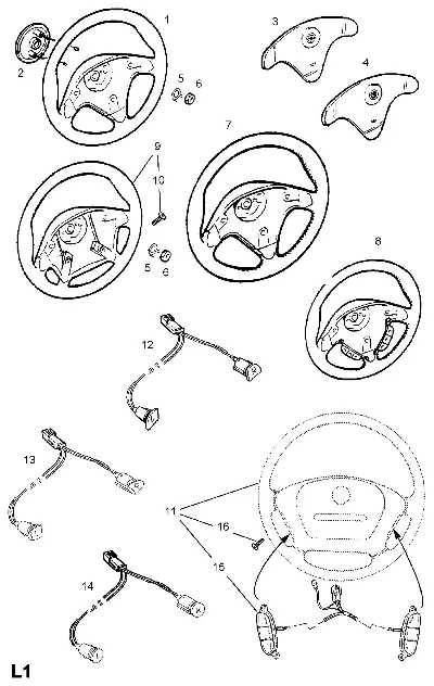 Схема применения Рулевое колесо для Opel VECTRA B (36) (1995 - 2002)