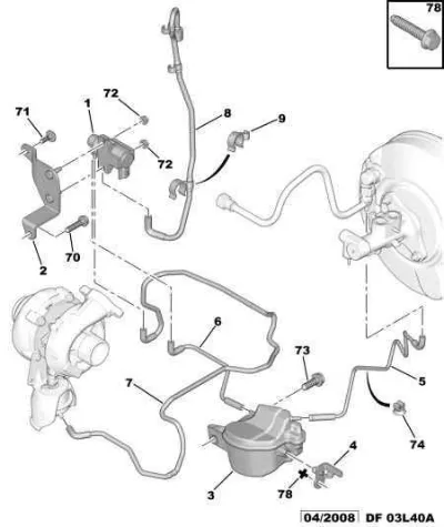 Схема применения Клапан преобразователь давления наддува (соленоид) для Peugeot 407 (6D) (2004 - 2011)