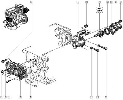 Схема применения Помпа водяная (насос) охлаждения для Renault 19 II (B53, C53) (1992 - 1995)