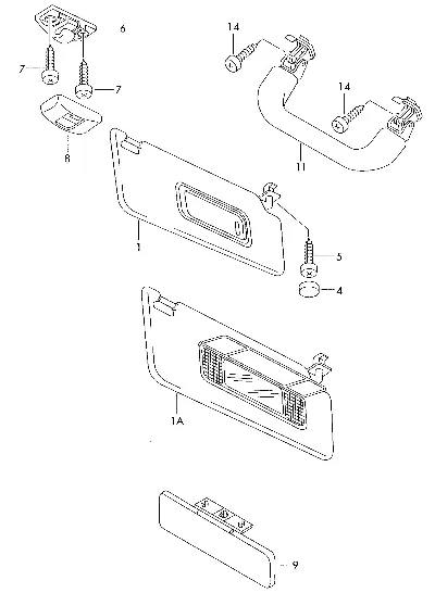 | (1) | 1Z0857551Q | Cолнцезащитный козырёк с подсветкой зеркала и крышкой | |
