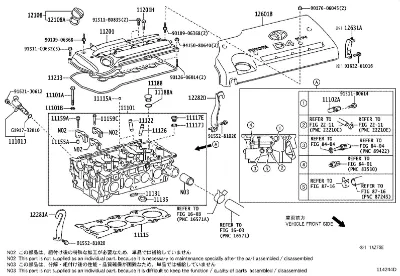 Схема применения Прокладка клапанной крышки двигателя для Toyota AVENSIS II (T25) (2003 - 2008)