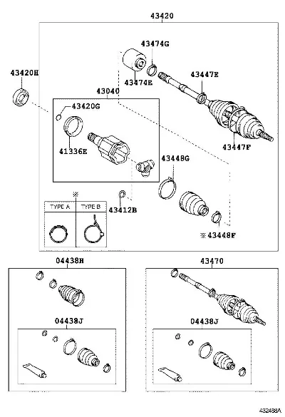 | 04438H | 0442828140 | BOOT KIT, FRONT DRIVE SHAFT, IN & OUTBOARD, LH |