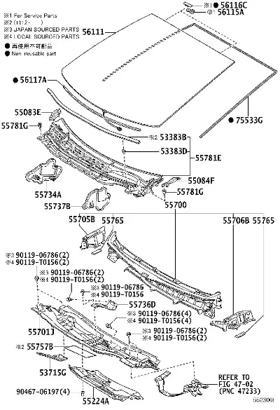 | 55701J | 5570147011 | Ветровая панель, внешняя (в подсборе) | |
