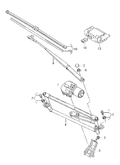 | 4 | 5K1955601 | Крепление стеклоочистителя с тягой и кривошипом | |