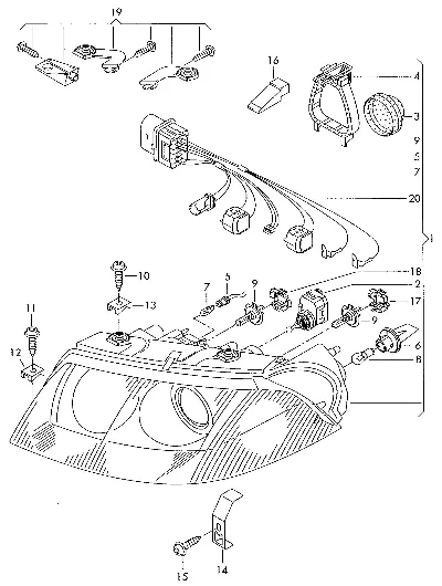 | 18 | 3B0941160C | Зажим для дальнего света | |
